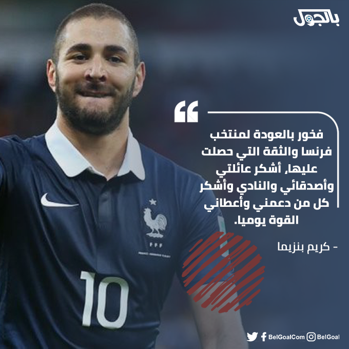 ديشان أصر على عدم ضم بنزيما لصفوف. عبر كريم بنزيما مهاجم فريق ريال مدريد سعادته بقرار عودته لتمثيل منتخب فرنسا مرة أخري بعد غياب 6 سنوات، وأعلن ديديه تشامب المدير الفني للفريق عن الإستعانة بهداف الفريق السابق في في مسابقة اليورو هذا الموسم بعد أن توقف. كريم بنزيما is on facebook. عودة كريم بنزيما إلى المنتخب الفرنسي. أطلق الجزائري رياض محرز، لاعب مانشستر سيتي الإنجليزي، بعض التصريحات تعليقاً على عودة الفرنسي كريم بنزيما، مهاجم ريال مدريد الإسباني، إلى قائمة منتخب بلاده المستدعاة لمسابقة يورو 2020